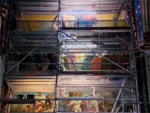 En avril 2013, après l’achèvement des sols, a eu lieu la pose et le marouflage d’une toile peinte de Grellet, mesurant 12 mètres sur 4,50 mètres. La restauration de la couche picturale s’est faite sur place, dans des conditions optimales.