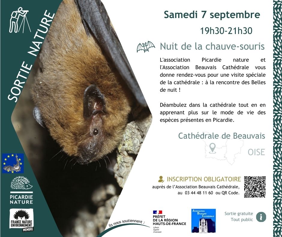 Le samedi 7 septembre, de 19h30 à 21h30, plongez au cœur de la mystérieuse vie nocturne des chauves-souris lors d’un événement unique organisé par l’Association Picardie Nature et l’Association Beauvais Cathédrale. Sous le thème « À la rencontre des Belles de Nuit », cette soirée promet d’être un moment aussi instructif qu’enchanteur.