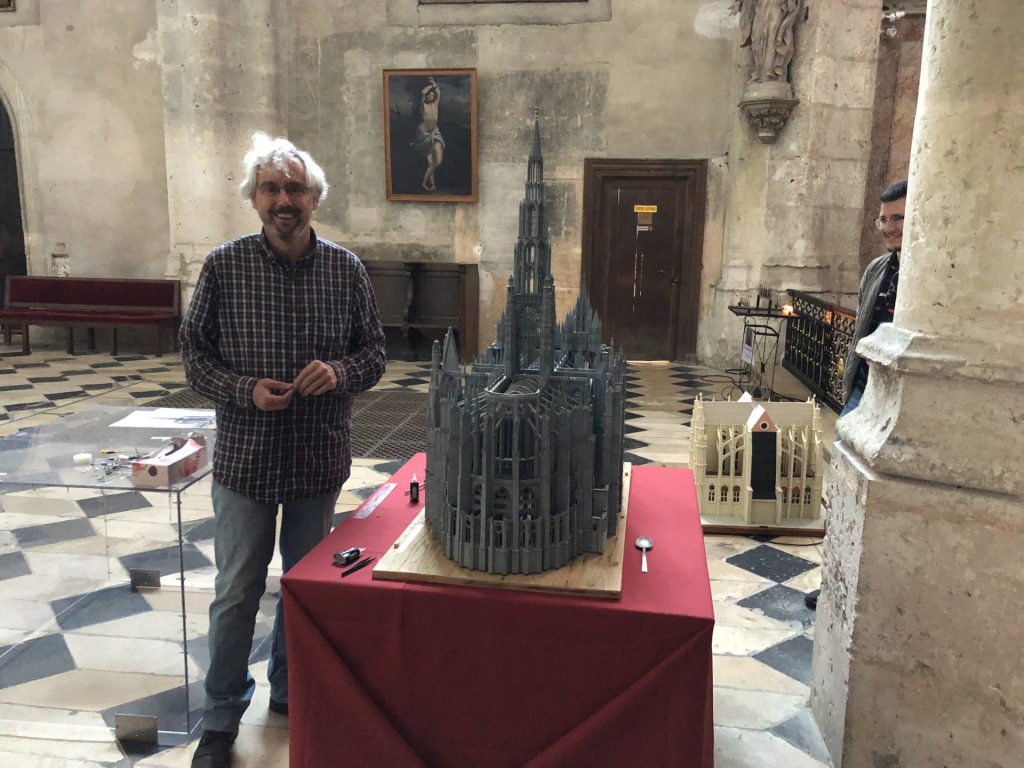 Cette œuvre minutieuse est le fruit de six années de travail passionné menées par Pascal Hassé, maquettiste belge passionné d’architecture médiévale. Véritable hommage à la splendeur et à la complexité de la cathédrale, cette maquette a été réalisée à partir d’un patient travail de recherche s’appuyant sur les plans anciens, gravures, documents d’archives et relevés architecturaux. Chaque détail, chaque proportion, chaque élément sculpté a été recréé avec une précision remarquable.