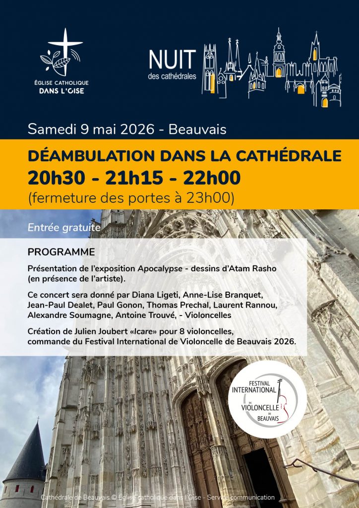 À l’occasion de la Nuit européenne des cathédrales, la cathédrale Saint-Pierre de Beauvais ouvre ses portes pour une déambulation nocturne unique, mêlant art visuel et musique contemporaine. Une invitation à découvrir ce joyau gothique sous un jour nouveau, entre lumière, dessins et vibrations des violoncelles.